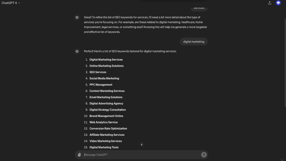 - Services Offered: Content generation and query answering related to keywords and SEO.
