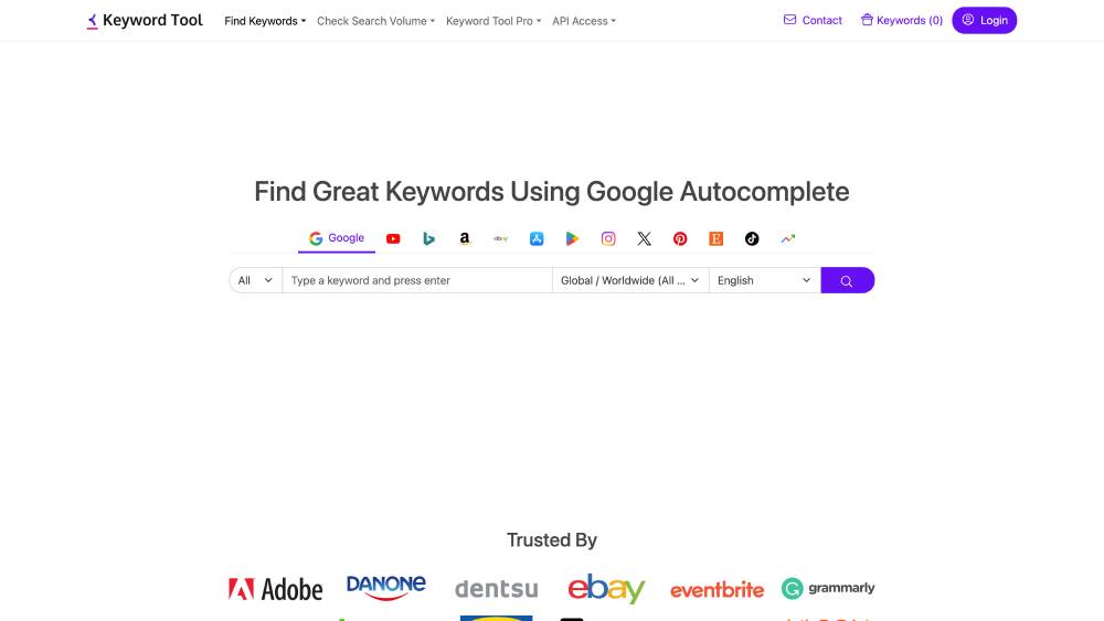 KeywordTool.io uses Google Autocomplete to generate hundreds of long-tail keywords for any topic.