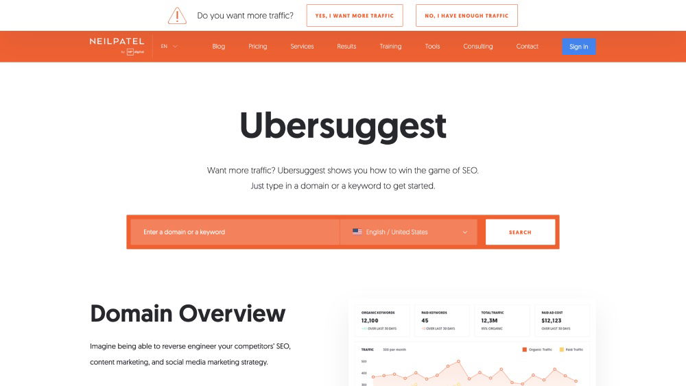 - Services Offered: Offers keyword suggestions and traffic estimations.